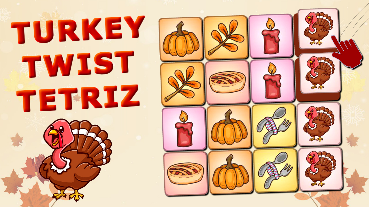 Immerse yourself in the Thanksgiving spirit with 'Turkey Twist Tetriz.' Strategically rotate, position, and match festive items to score big. Can you prevent the board from overflowing and achieve top scores this Thanksgiving?